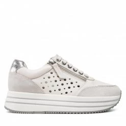Chaussures Basses Sneakers GEOX – D Leelu’ A D16FFA 08522 C1181 Off White/Lt Taupe Blanc